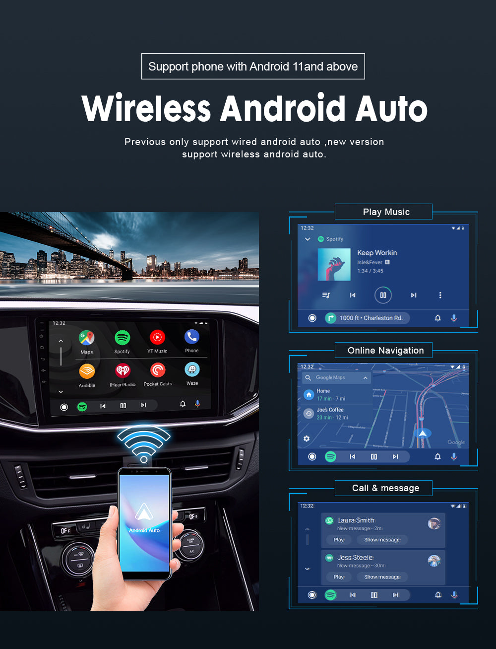 【Escort your Driving life 】When it works, the wireless application will Automatically start and quickly connect to your iPhone after connecting for the first time, allowing you to quickly enter a comfortable and convenient driving state. It supports voice control, and you can use voice assistants like SIRI to assist with driving; steering wheel control, touch screen control, and knob operation can help you safely to control the sound volume.