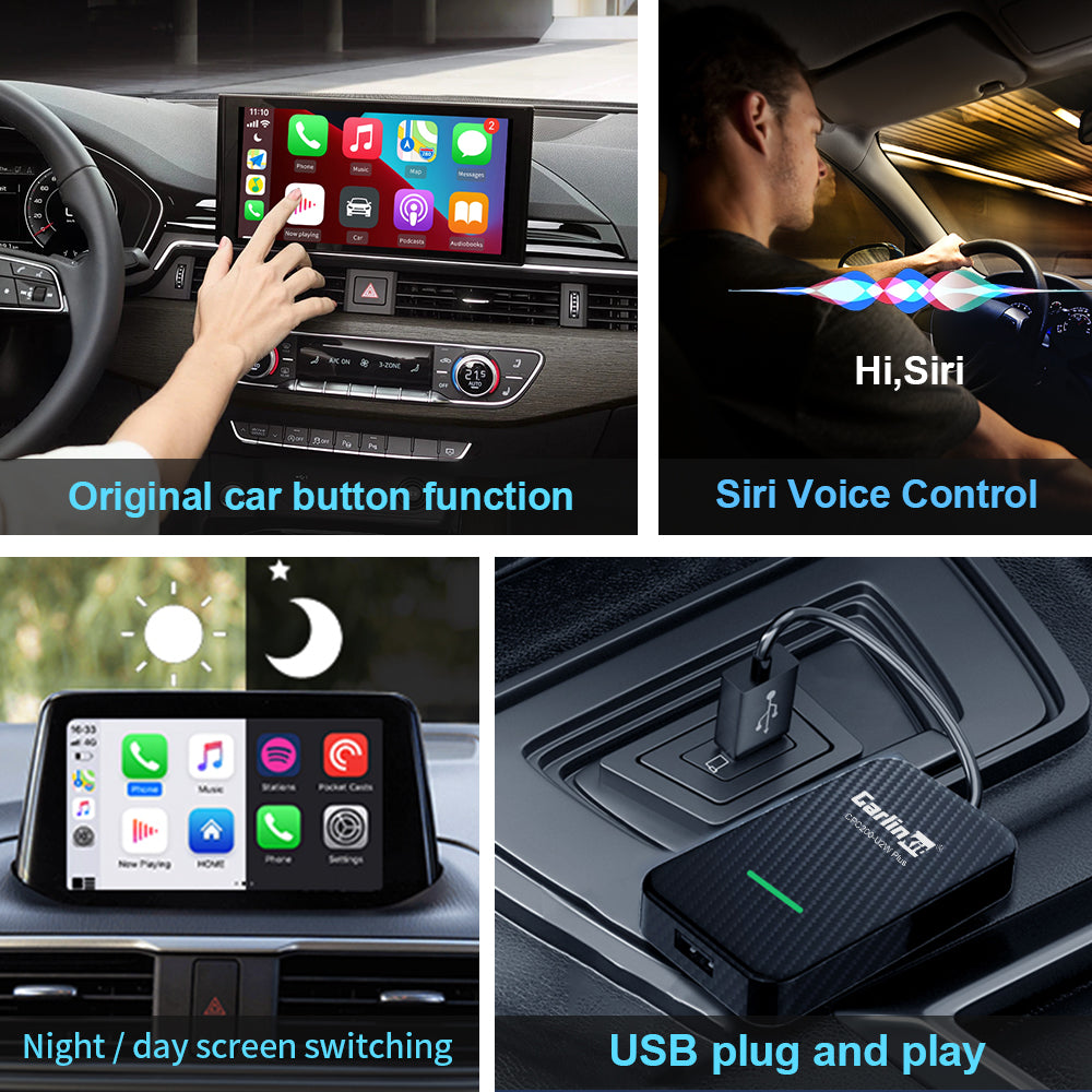 【Fonction principale】- L'adaptateur CarlinKit 3.0 est équipé d'une puce de traitement 5G, plus un dissipateur de chaleur, utilisant un matériau en fibre de carbone, une meilleure dissipation de la chaleur. Prise en charge de l'application de navigation GPS (navigation en temps réel), commande vocale, Siri, musique en ligne, appel téléphonique, musique, iTunes ou application installée et accès aux messages. Et prend en charge les mises à jour en ligne, découvrez les dernières fonctionnalités de la version à tout moment, vous offrant une expérience de conduite sûre et confortable.