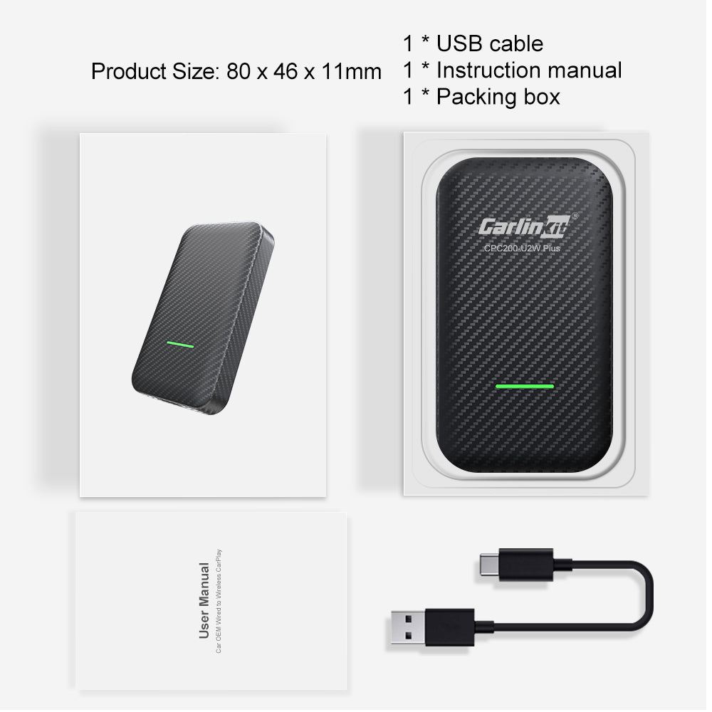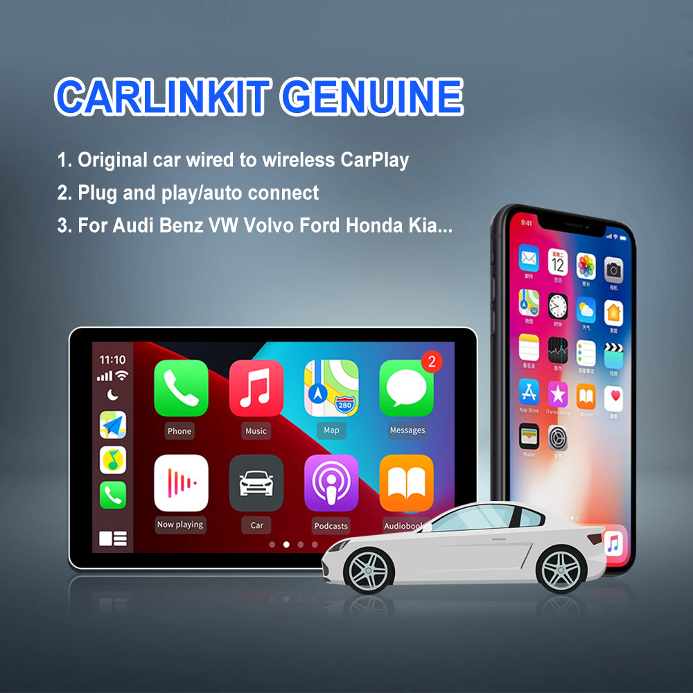 Carlinkit 3.0 Activateur de dongle sans fil Apple CarPlay pour Audi Benz Mazda Porsche Volkswagen Volvo Ford Citroën Honda Nissan Toyota Car MP4 MP5 Play Coque en fibre de carbone