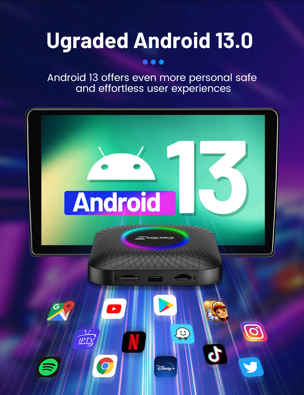 Carlinkit – boîtier TV Android 13 pour voiture, LED, adaptateur sans fil CarPlay, SM6225, 8 cœurs, IPTV, Netfilx, lecture vidéo, CarPlay, Ai, 2023