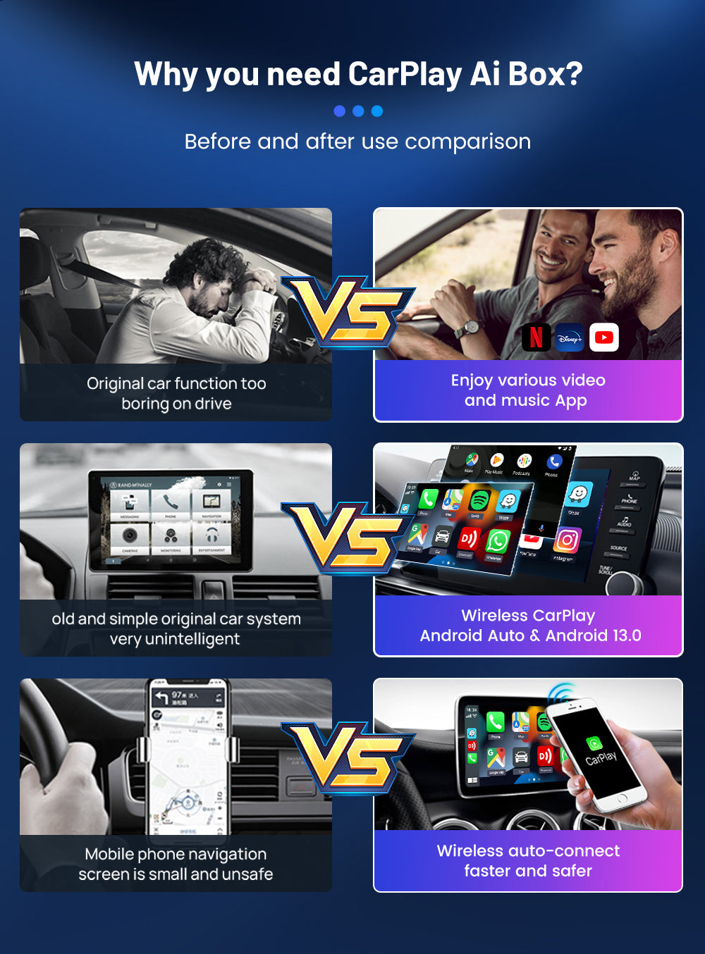 >>>2023 Nouveauté Android 13 CarPlay AI Box -Tbox-LED